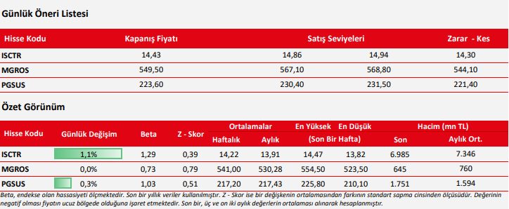 Kaynak: Ziraat Yatırım Günlük Teknik Bülten