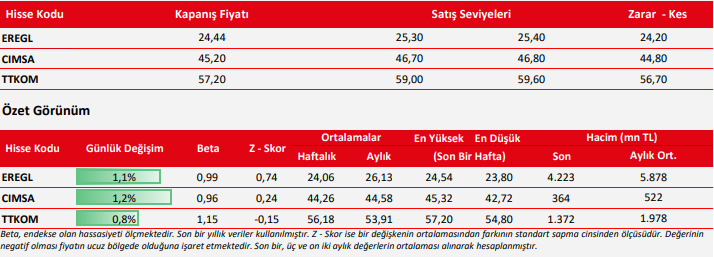 Kaynak: Ziraat Yatırım Günlük Teknik Bülten