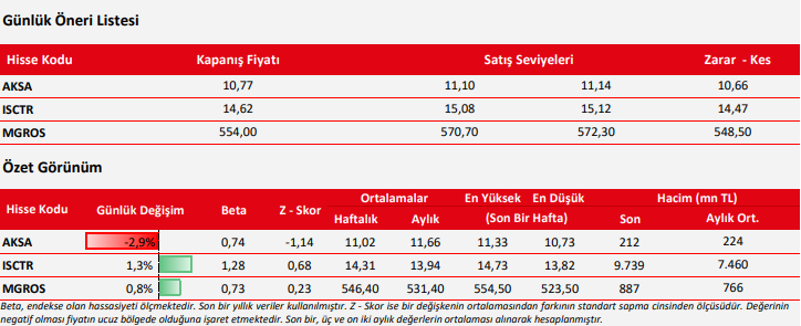 Kaynak: Ziraat Yatırım Günlük Teknik Bülten
