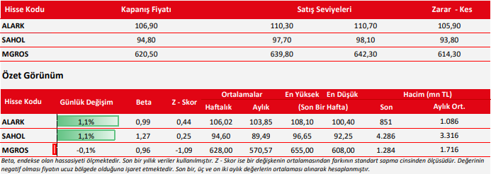 Kaynak: Ziraat Yatırım Günlük Teknik Bülten