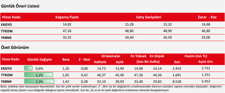 Kaynak: Ziraat Yatırım Günlük Teknik Bülten