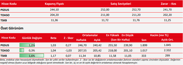 Kaynak: Ziraat Yatırım Günlük Teknik Bülten