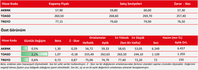 Kaynak: Ziraat Yatırım Günlük Teknik Bülten