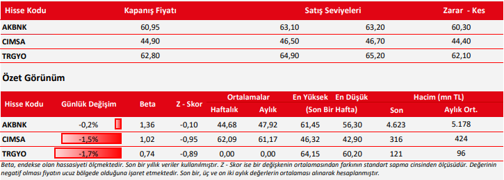 Kaynak: Ziraat Yatırım Günlük Teknik Bülten