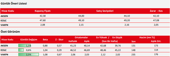 Kaynak: Ziraat Yatırım Günlük Teknik Bülten