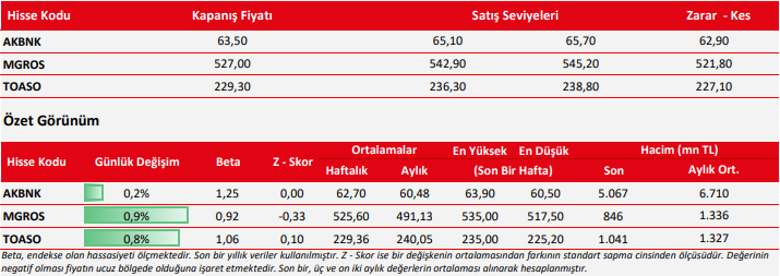 Kaynak: Ziraat Yatırım Günlük Teknik Bülten