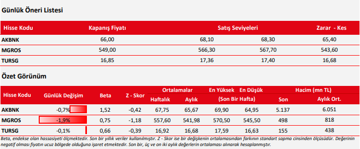 Kaynak: Ziraat Yatırım Günlük Teknik Bülten