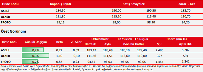 Kaynak: Ziraat Yatırım Günlük Teknik Bülten