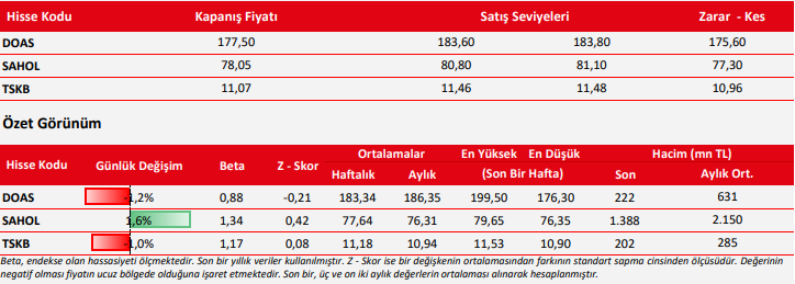 Kaynak: Ziraat Yatırım Günlük Teknik Bülten