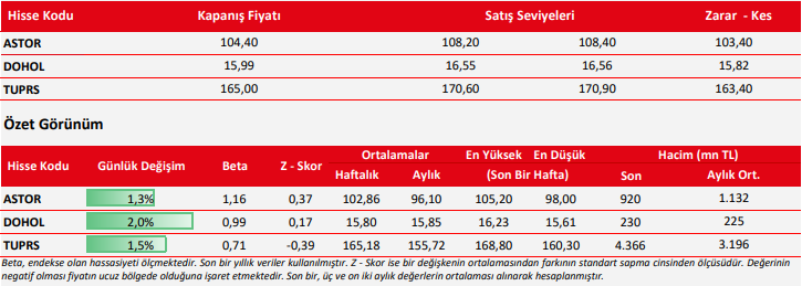 Kaynak: Ziraat Yatırım Günlük Teknik Bülten