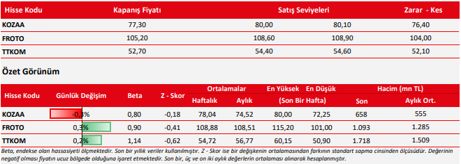Kaynak: Ziraat Yatırım Günlük Teknik Bülten