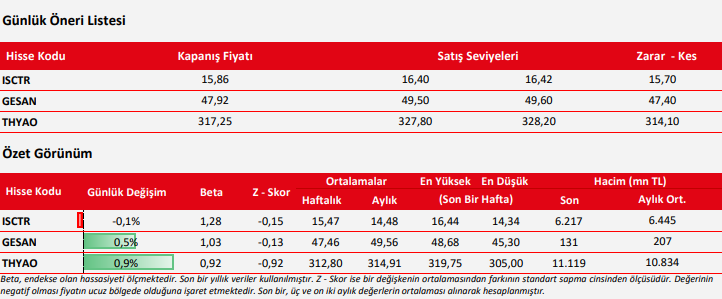 Kaynak: Ziraat Yatırım Günlük Teknik Bülten