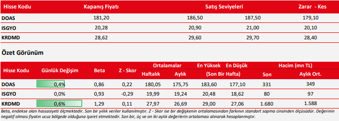 Kaynak: Ziraat Yatırım Günlük Teknik Bülten