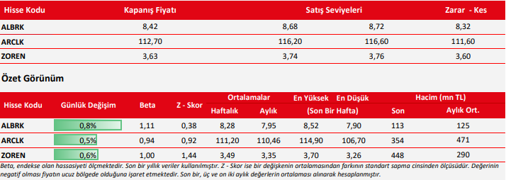 Kaynak: Ziraat Yatırım Günlük Teknik Bülten