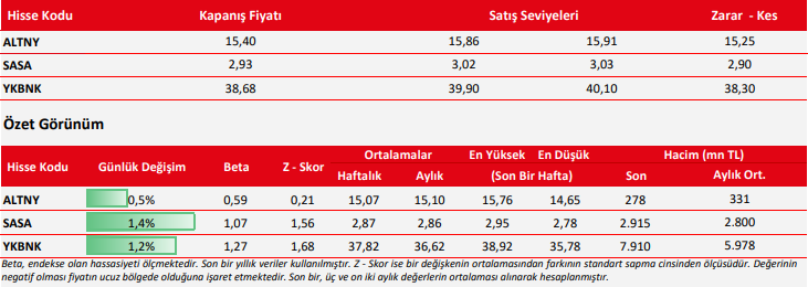 Kaynak: Ziraat Yatırım Günlük Teknik Bülten