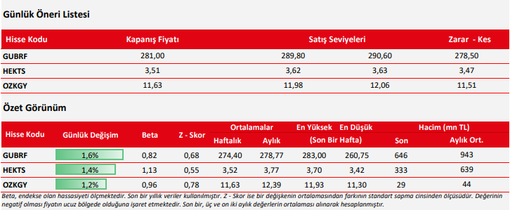 Kaynak: Ziraat Yatırım Günlük Teknik Bülten