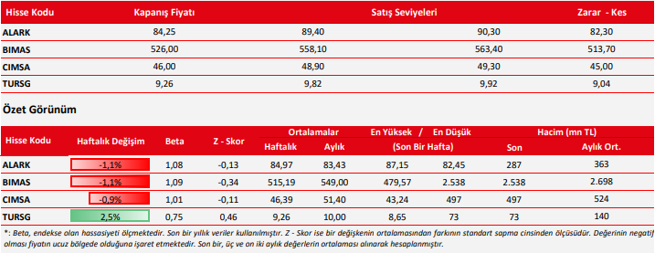Kaynak: Ziraat Yatırım Haftalık Teknik Hisse Önerileri