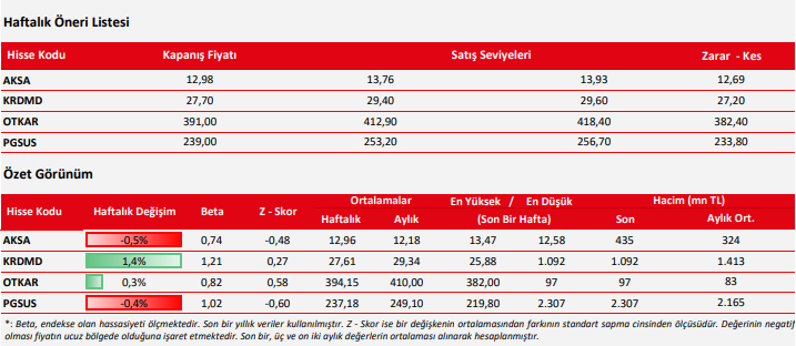 Haftalık Hisse Teknik Öneri Listesi