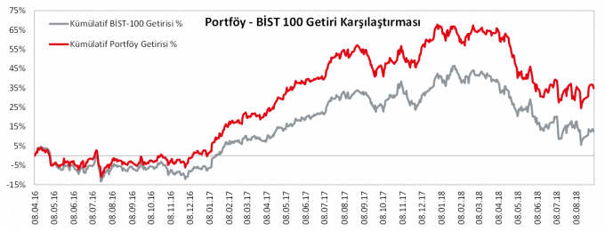 Portföy önerildiği tarihten itibaren %64,7 değer kazanırken, BİST 100 ise aynı dönemde %41,9 oranında artış kaydetmiştir. Buna istinaden, portföyümüzün BİST-100’e göre göreceli getirisi %16 olarak gerçekleşmiştir.