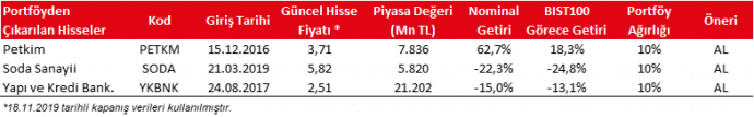 Ziraat Yatırım Hisse Öneri Portföyü – (19.11.2019)