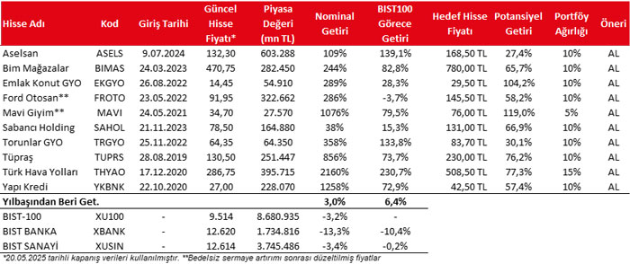 Kaynak: Ziraat Yatırım Hisse Öneri Portföyü